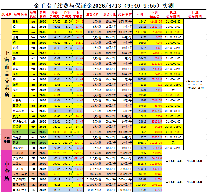 手续费与保证金会随商品价格的波动,交易所的手续费调整而变动